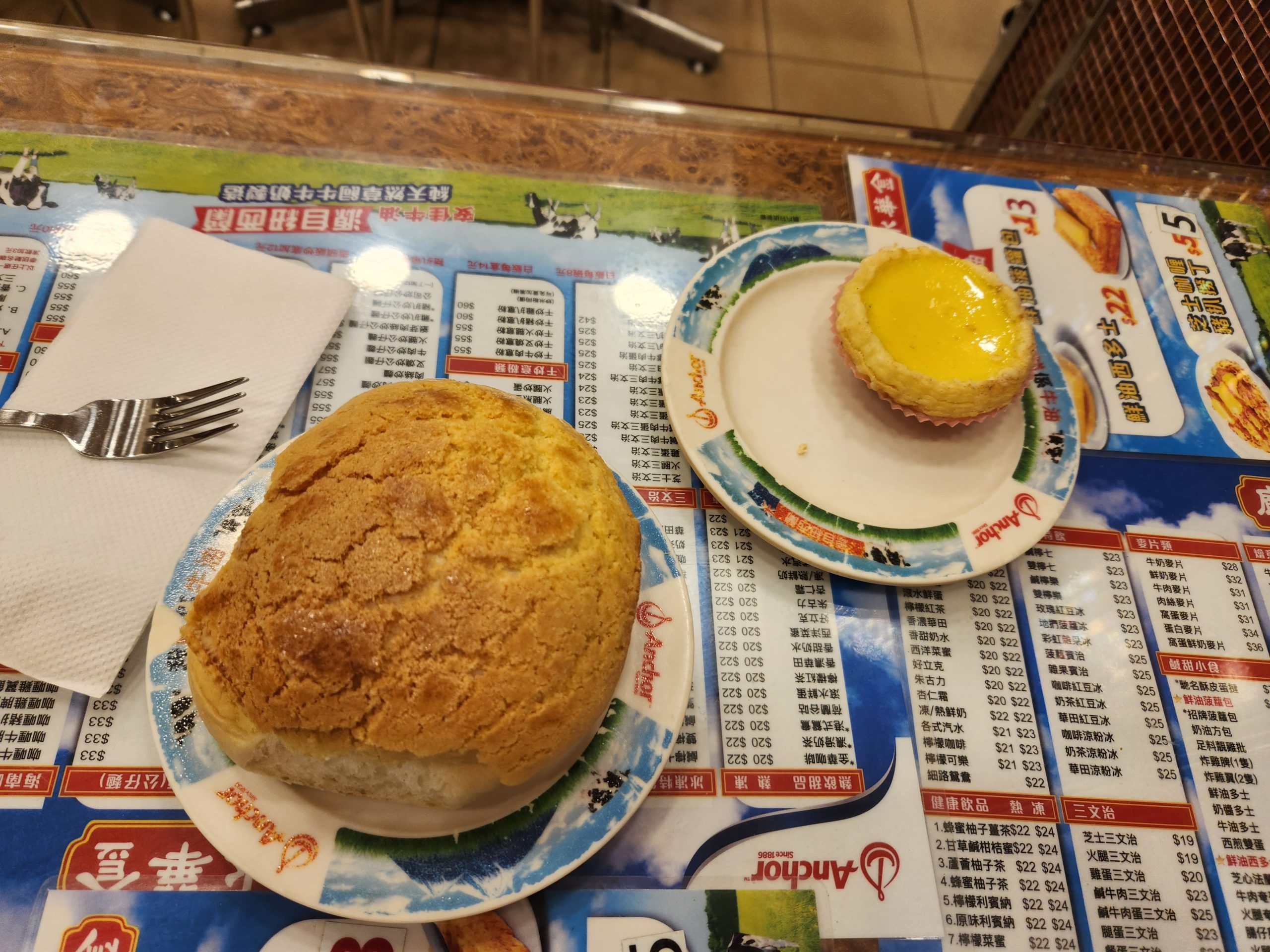 Since I would only have 2 full days in Hong Kong, today and tomorrow were going to be busy days. I started the day by walking to my local MRT station to purchase myself an Octopus card which is used for trains and paying for things in Hong Kong. I took the train to a café called Kam Wah Café in Mongkok, where I had an egg tart, pineapple roll, and milk tea, all of which are famous in Hong Kong, and all were very delicious. I felt like a local paying for it with my Octopus card. I then caught the MRT from Lantau Island to Tung Chung on Lantau Island.