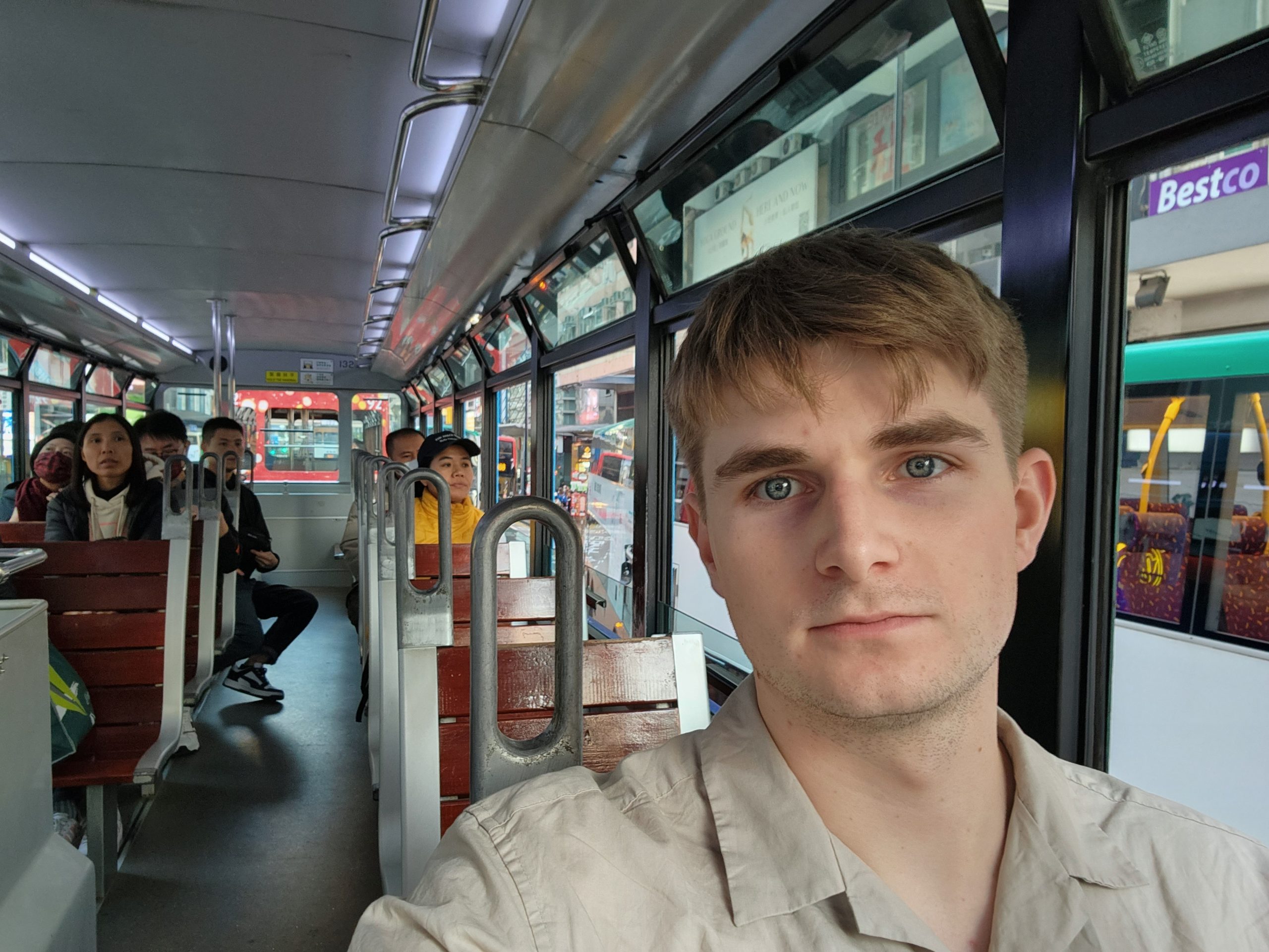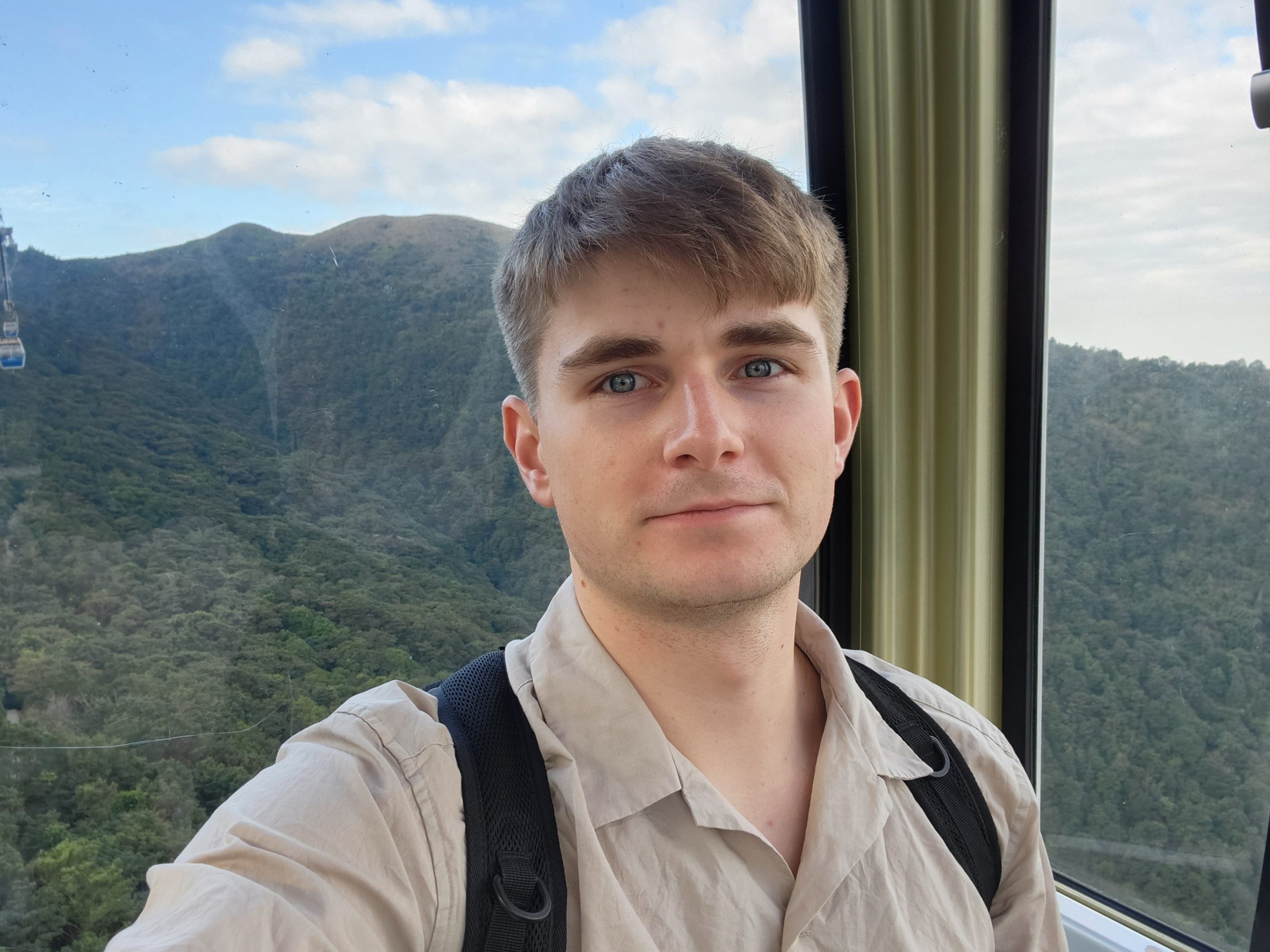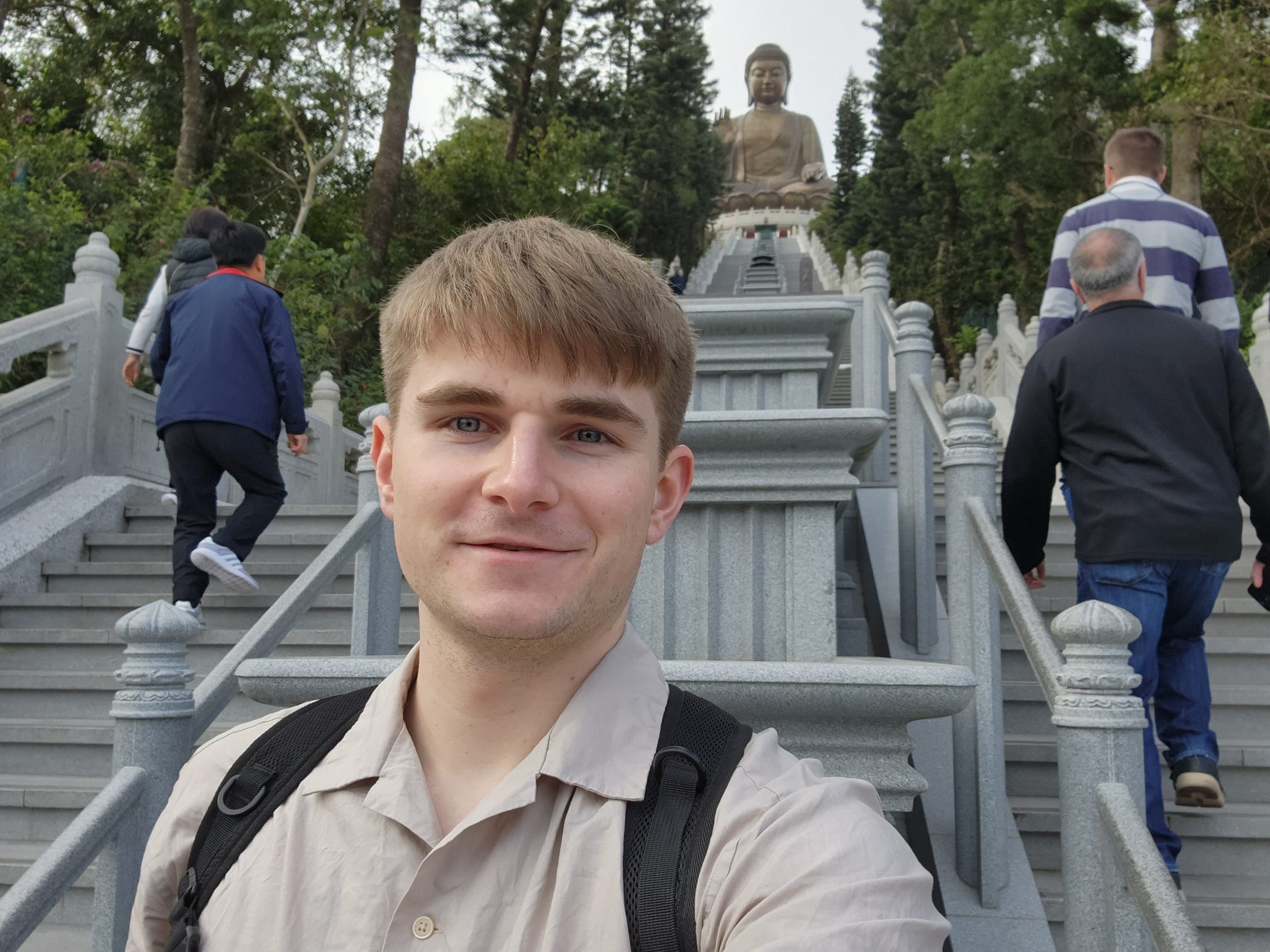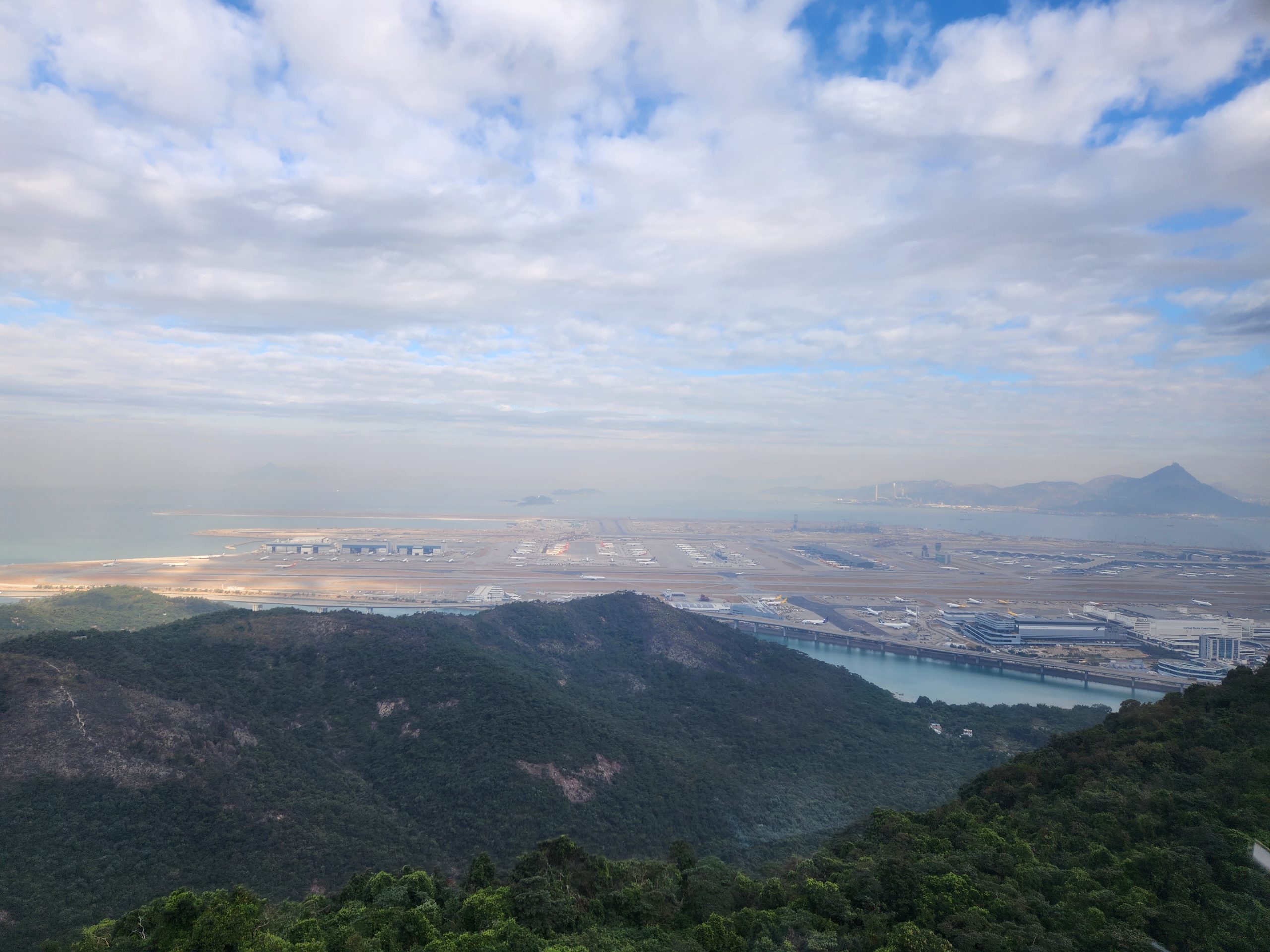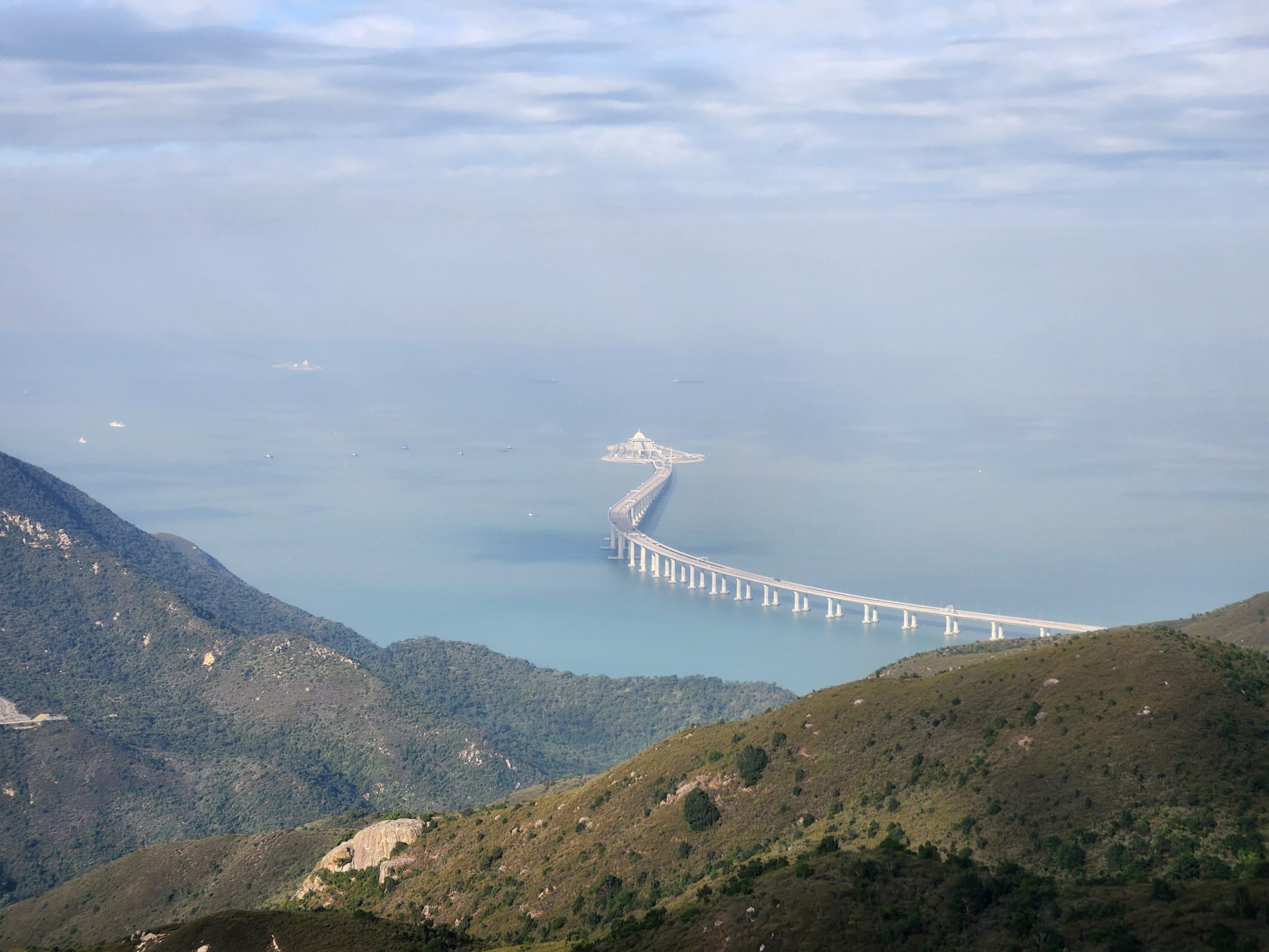 When the cable car opened, I headed up and purchased a ticket for a crystal car, meaning that it would have a glass floor. The views of the airport, surrounding mountains, bridges, and the Buddha statue were amazing. I thought it would be funny to try recreating some old photos of my dad from when we were all in Hong Kong as I feel that I look very similar now to how my dad looked back then. While I was doing this, I noticed that there was a new bridge behind me near the airport that had not been there last time. Eventually, it occurred to me that this was the new bridge that had been built connecting Hong Kong, Macao, and Zhuhai, which depends on the definition of a bridge (as it goes underwater in two places using manmade islands to let ships across), is the longest bridge across open water in the world.