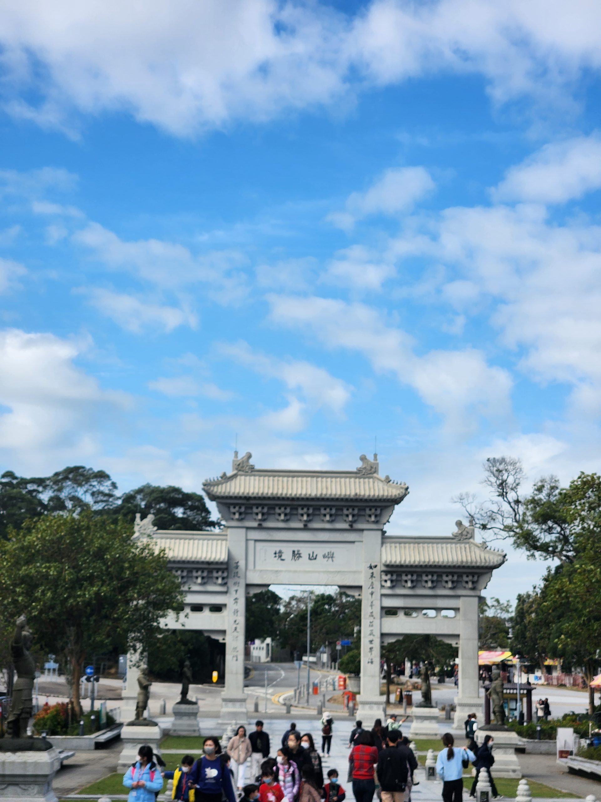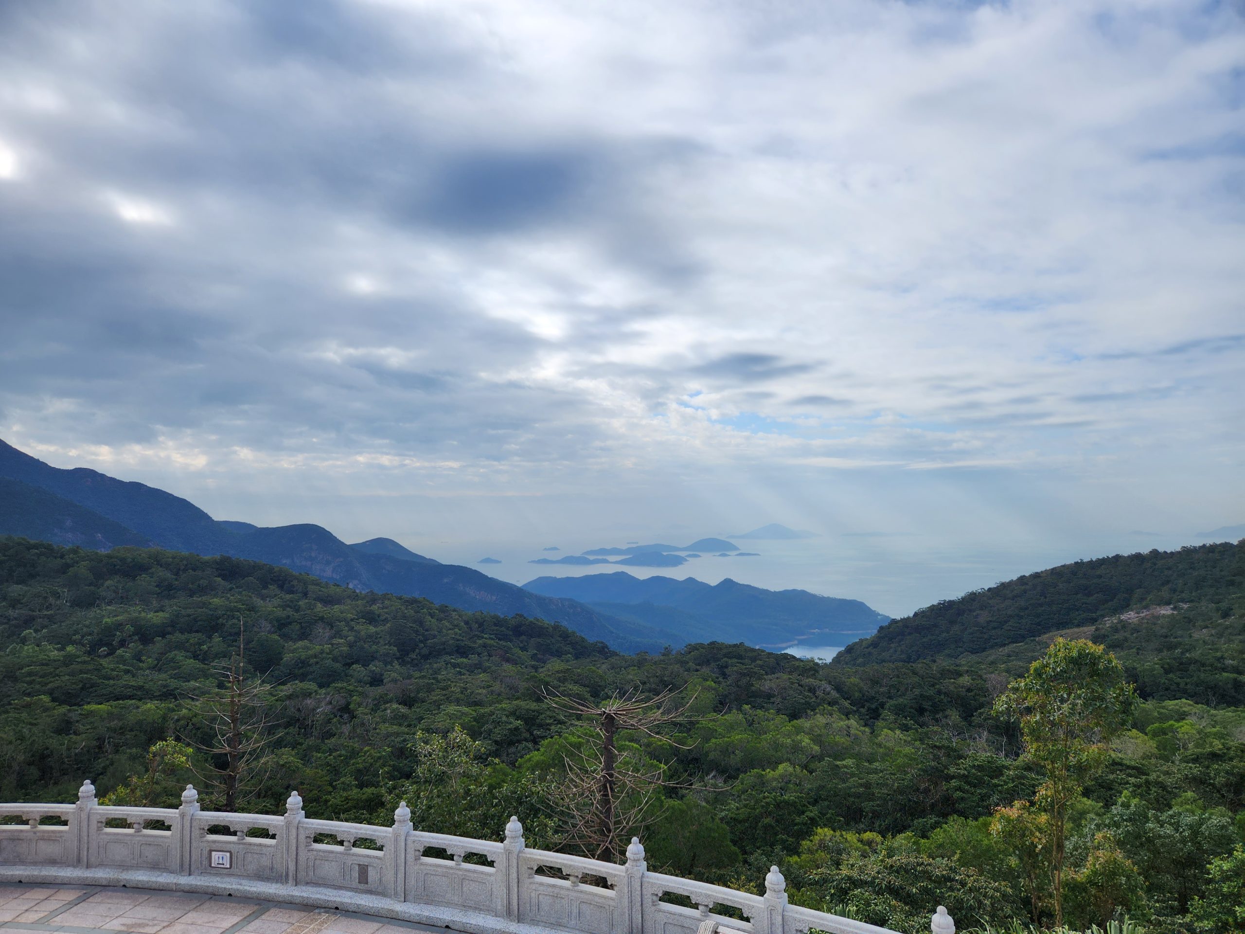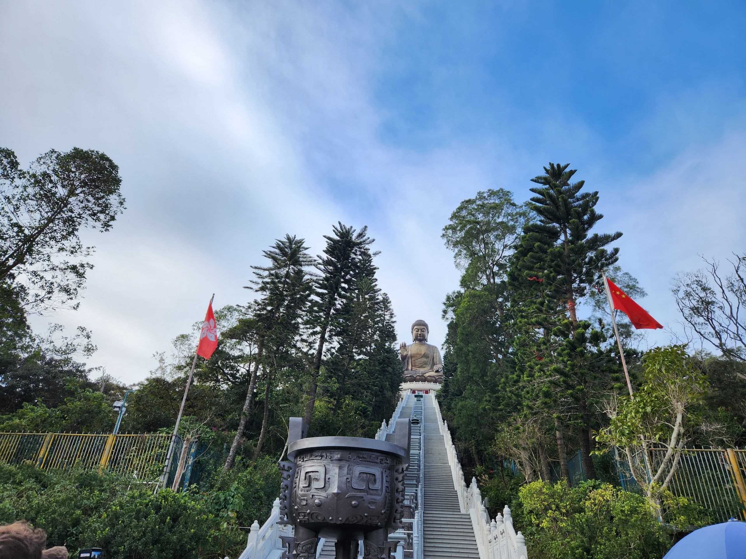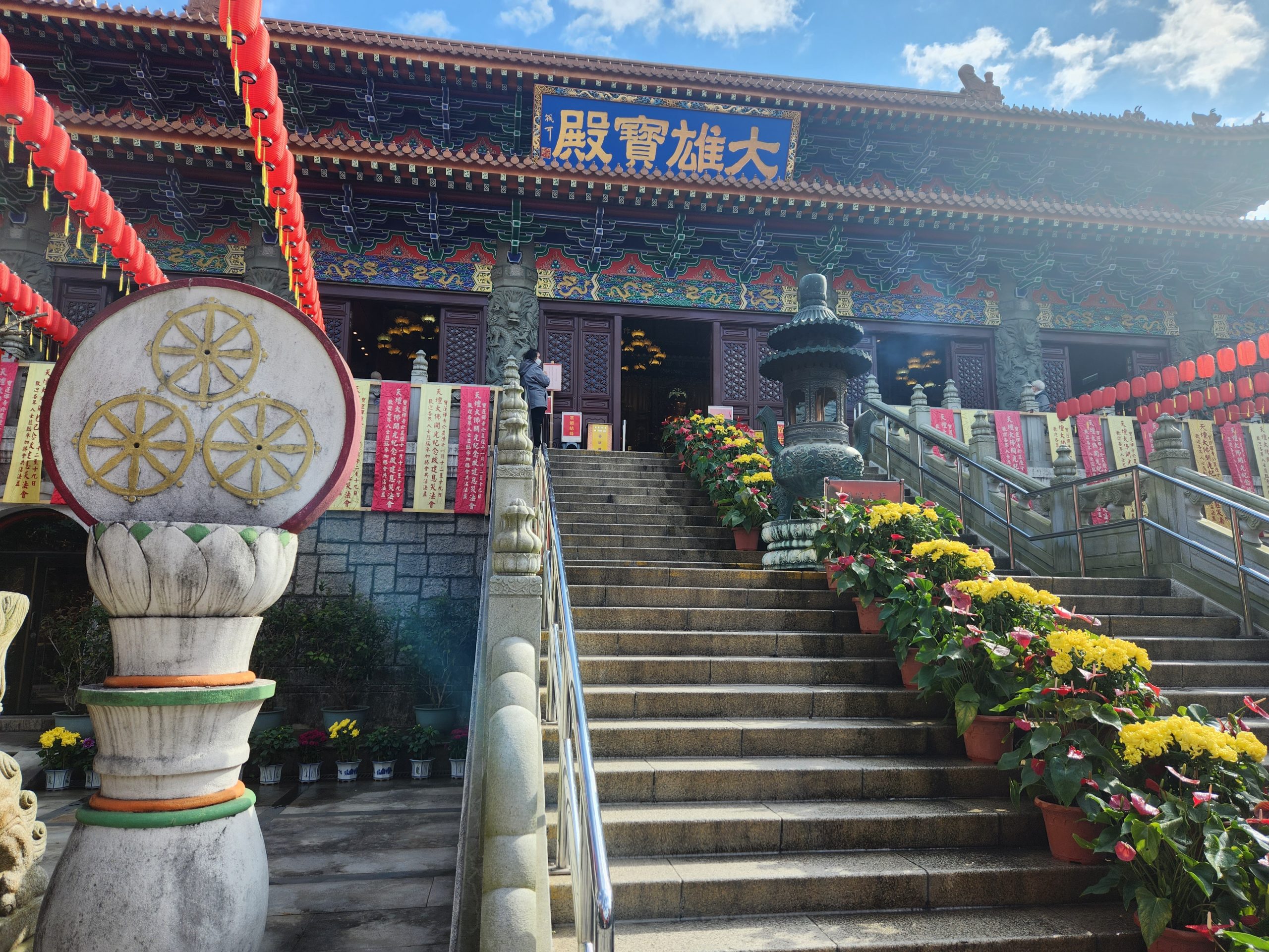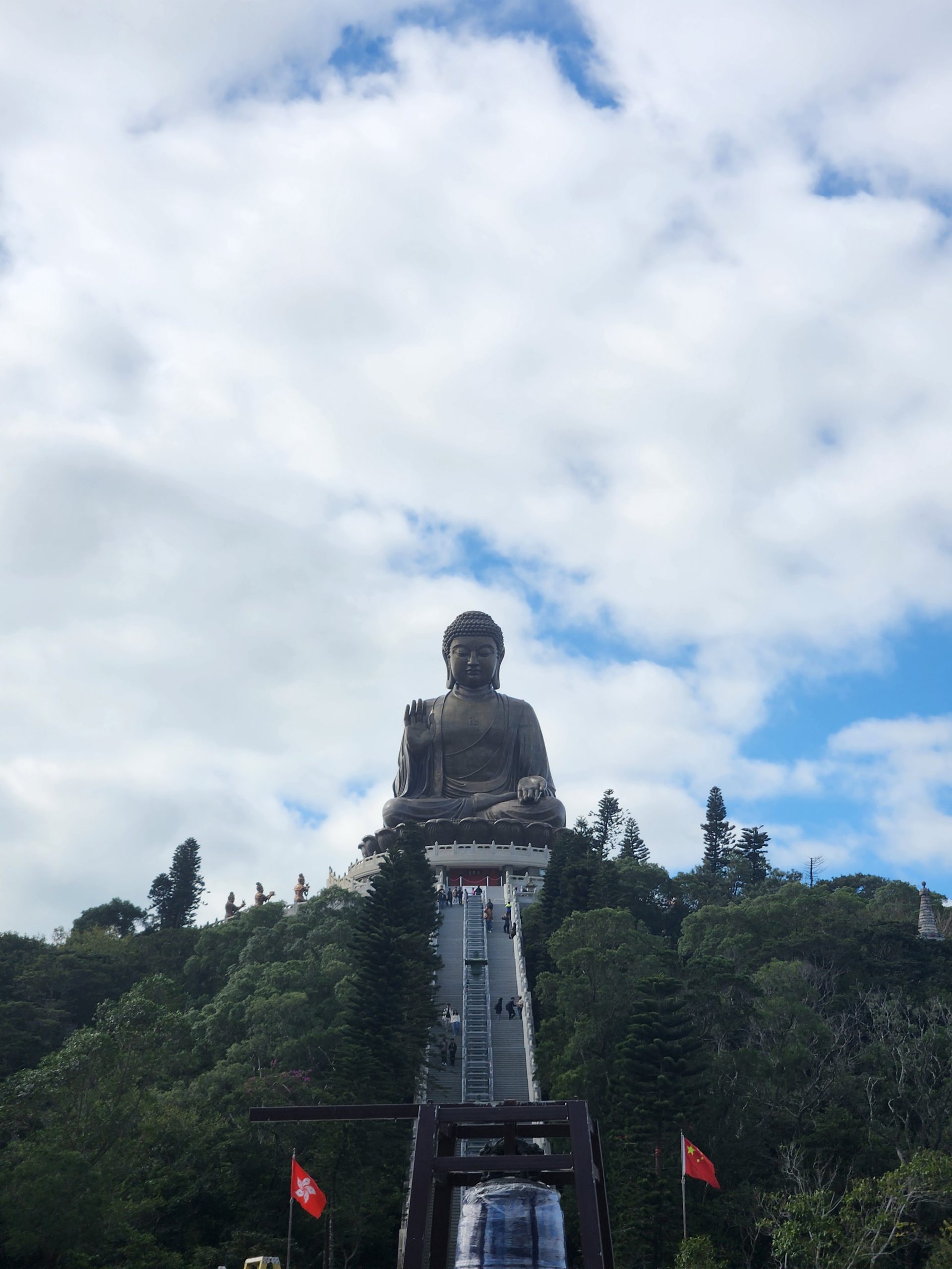 When I arrived in Ngong Ping Village, I walked through the village towards the Tian Tan Buddha statue. While walking through the village I noticed many shops which I remembered, including a 4D cinema where we watched a film when my family visited. I felt that this time I could much better appreciate the natural beauty and impressive design of the statue and surrounding areas. The stairs up provide amazing views that get better the closer you get to the statue.