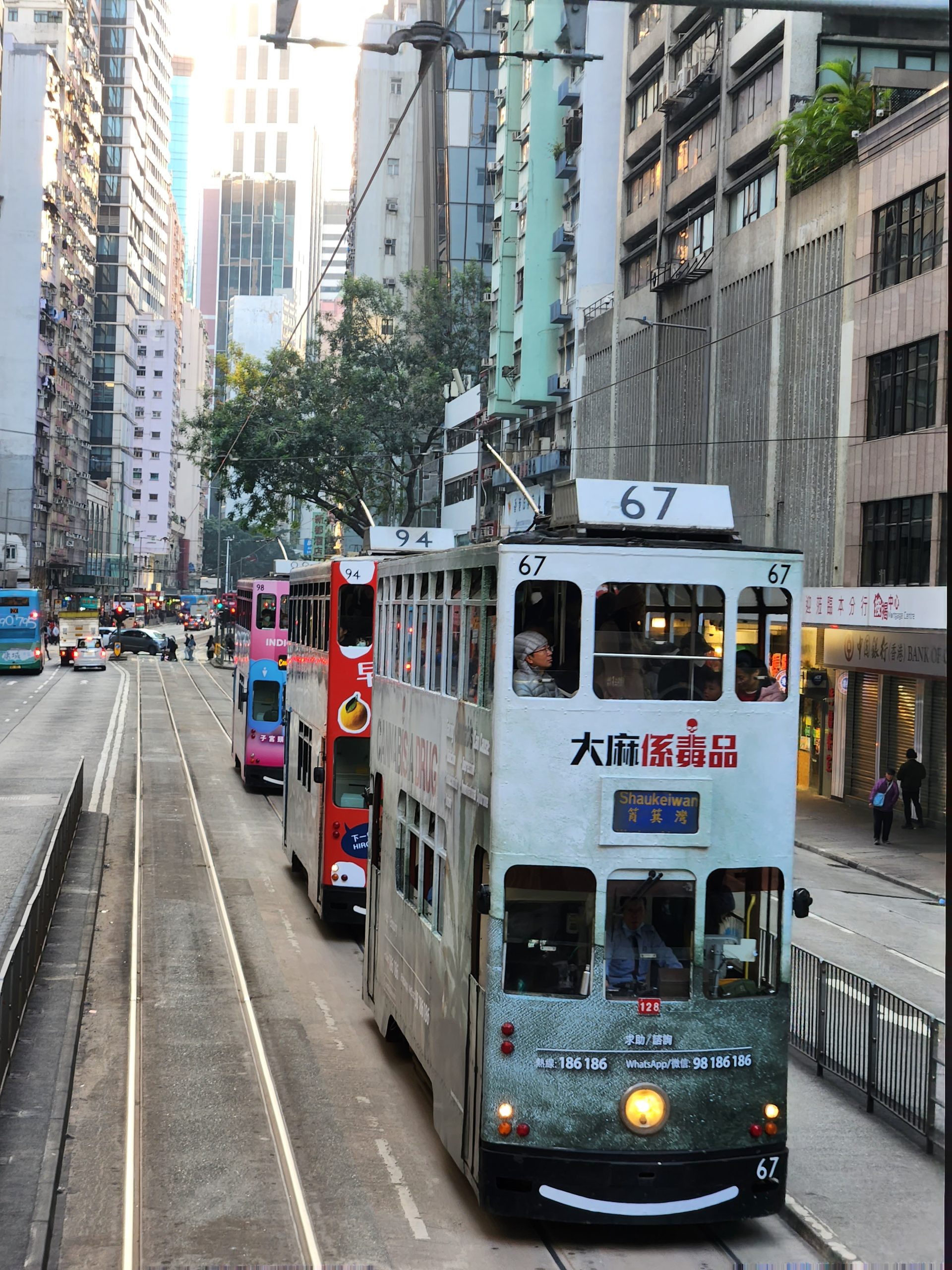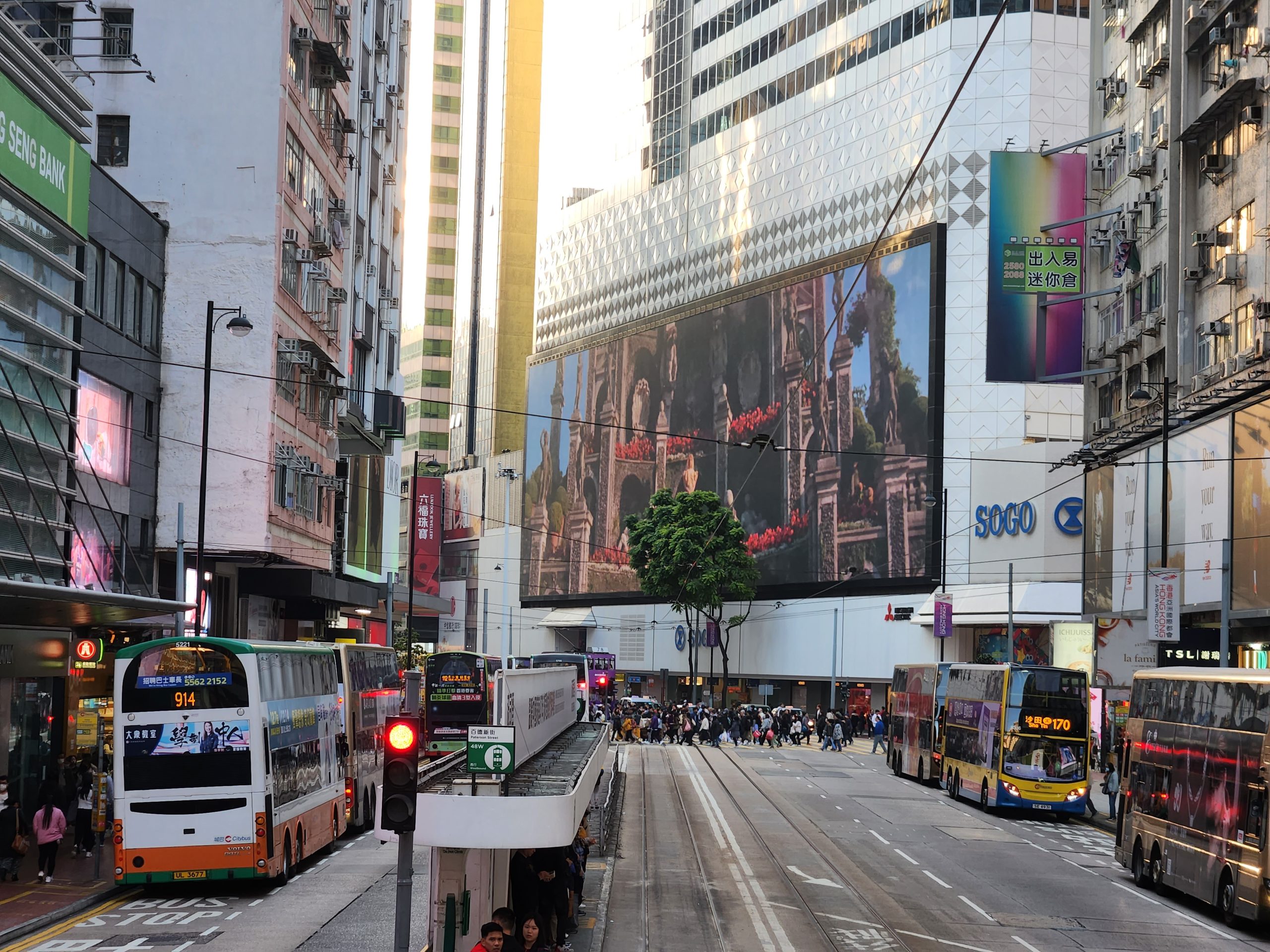 Next, I caught the MRT under the Victoria Harbor to Hong Kong Island, where I would go and visit Causeway Bay. When I arrived on the island, I walked towards Causeway Bay not quite remembering the significance of this area. After walking through Victoria Park to get to the shopping district and seeing many people practicing Tai Chi, I saw a familiar sight… the double-decker trams. I remember this from my last visit. I enjoyed walking around the shopping malls seeing the Hong Kong Times Square and oceans of people flowing across the streets every time a pedestrian light went green. I also had a ride on one of the double-decker trams when I was heading to a restaurant for dinner.