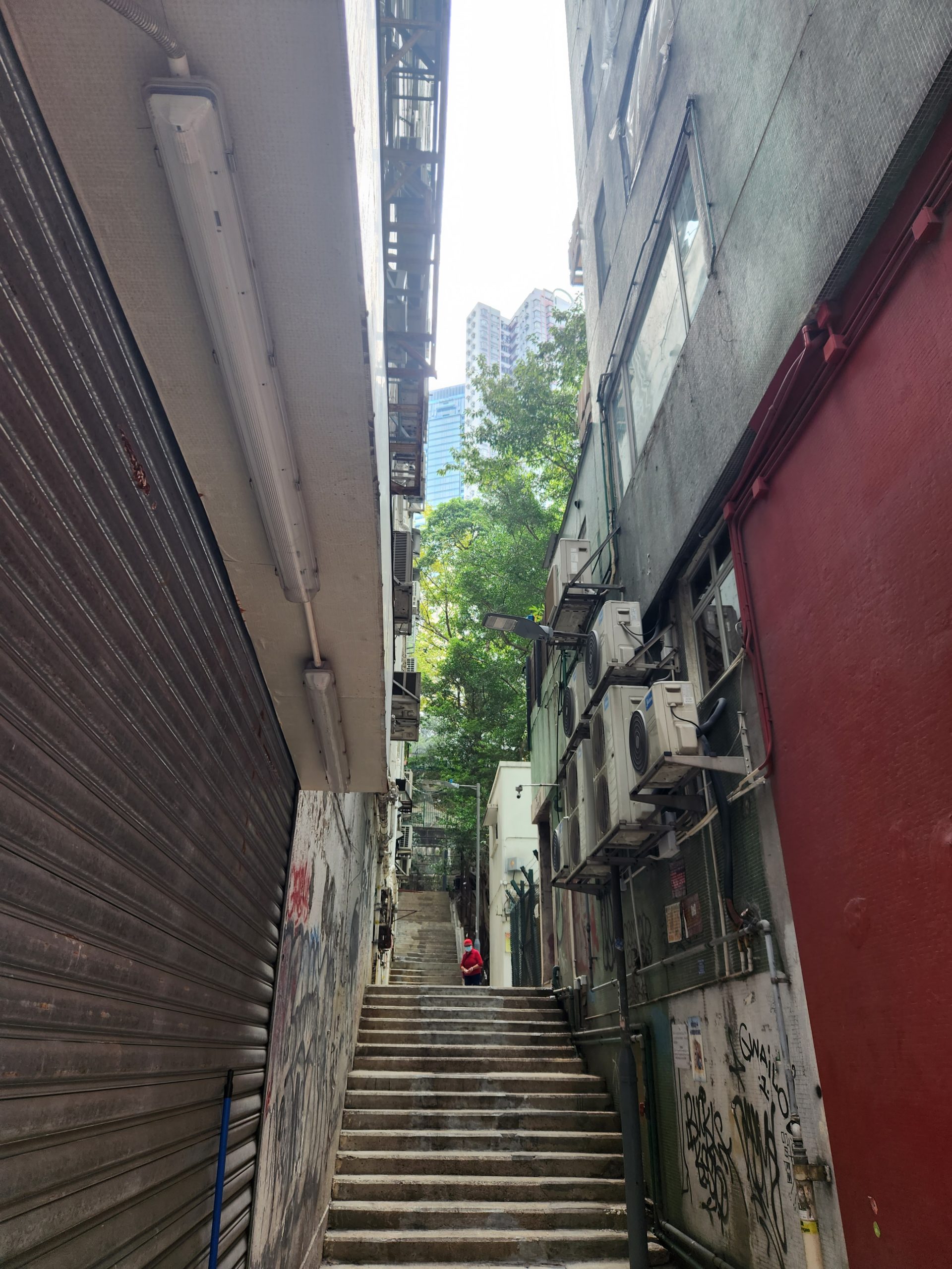 After finishing my walk, I caught the tram back down and noted that the queues for the tram at the bottom were no massive… another reminder that early starts are very advantageous in Hong Kong. My plan now was to go to Man Mo temple. It was around a 30 minute walk. It was a nice stroll through the central district admiring the unique architecture and steep alleyways. When I arrived at the temple I stopped for some quick photos before heading back through the Central District to Hong Kong Park, near where the Peak tram stop was.