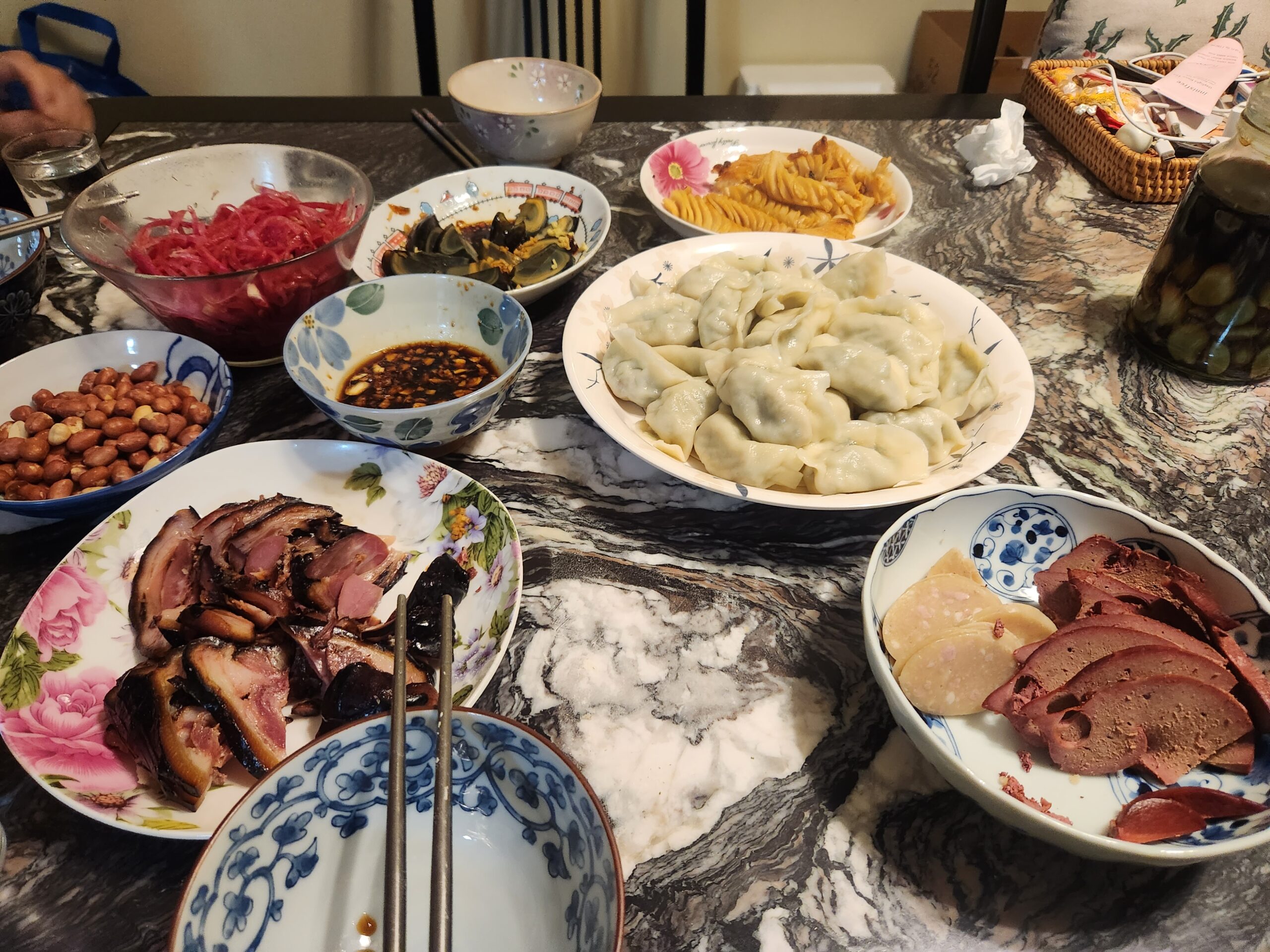 After we arrived at Angie’s parents house, we went together down to the supermarket to buy some supplied for dinner. Angie’s mum also, kindly bought some special Beijing cakes for us to take home. When we got back to their apartment, we all sat down together at the table and began making dumplings. This was my second time making handmade dumplings with Angie, and I think my skill has improved. This was a really nice experience chatting to Angie’s family as we made the dumplings. We later ate the dumplings with some other meats and vegetables for dinner. The dumplings were delicious with a specific vegetable giving them a unique, pleasant taste.