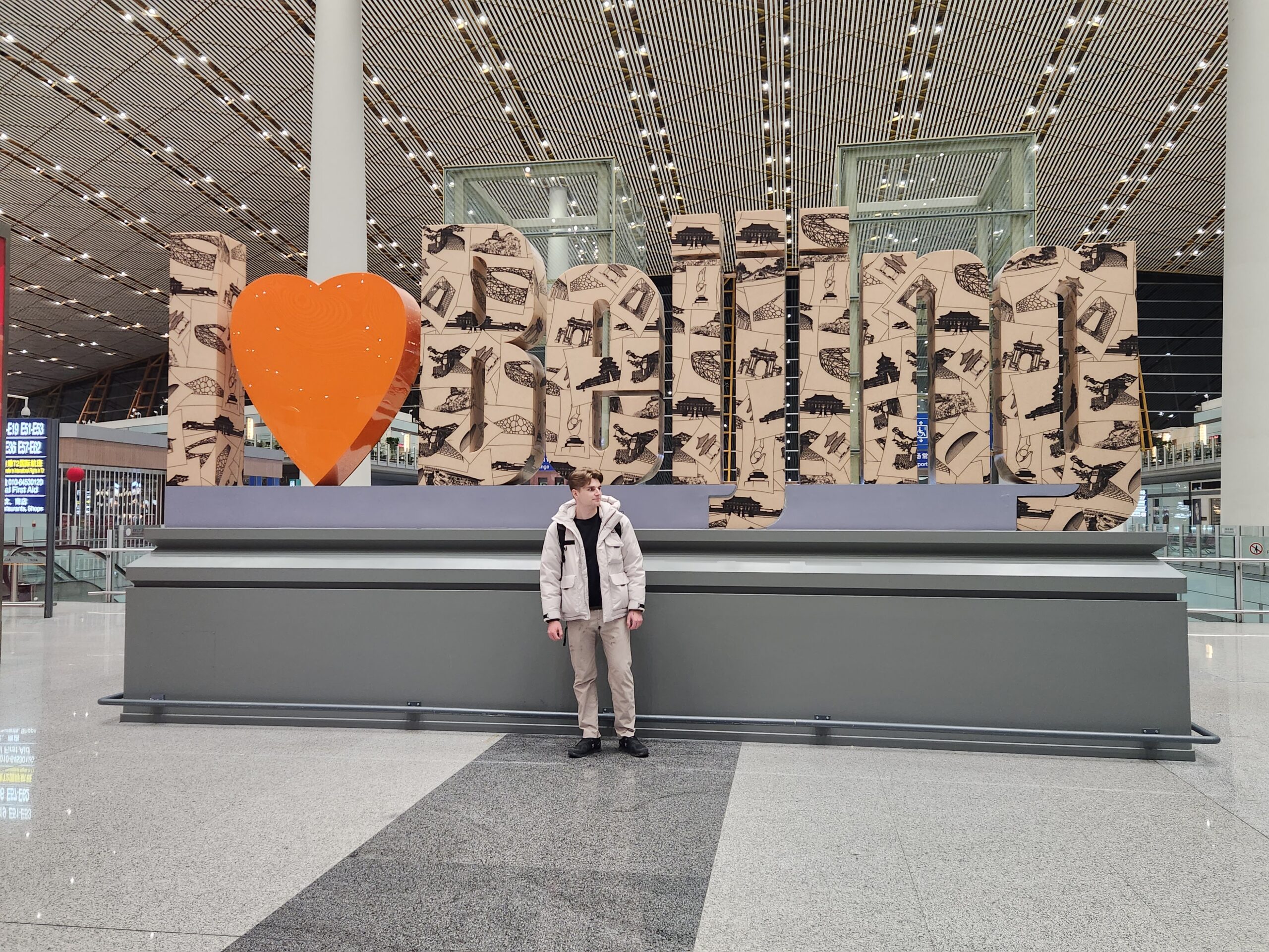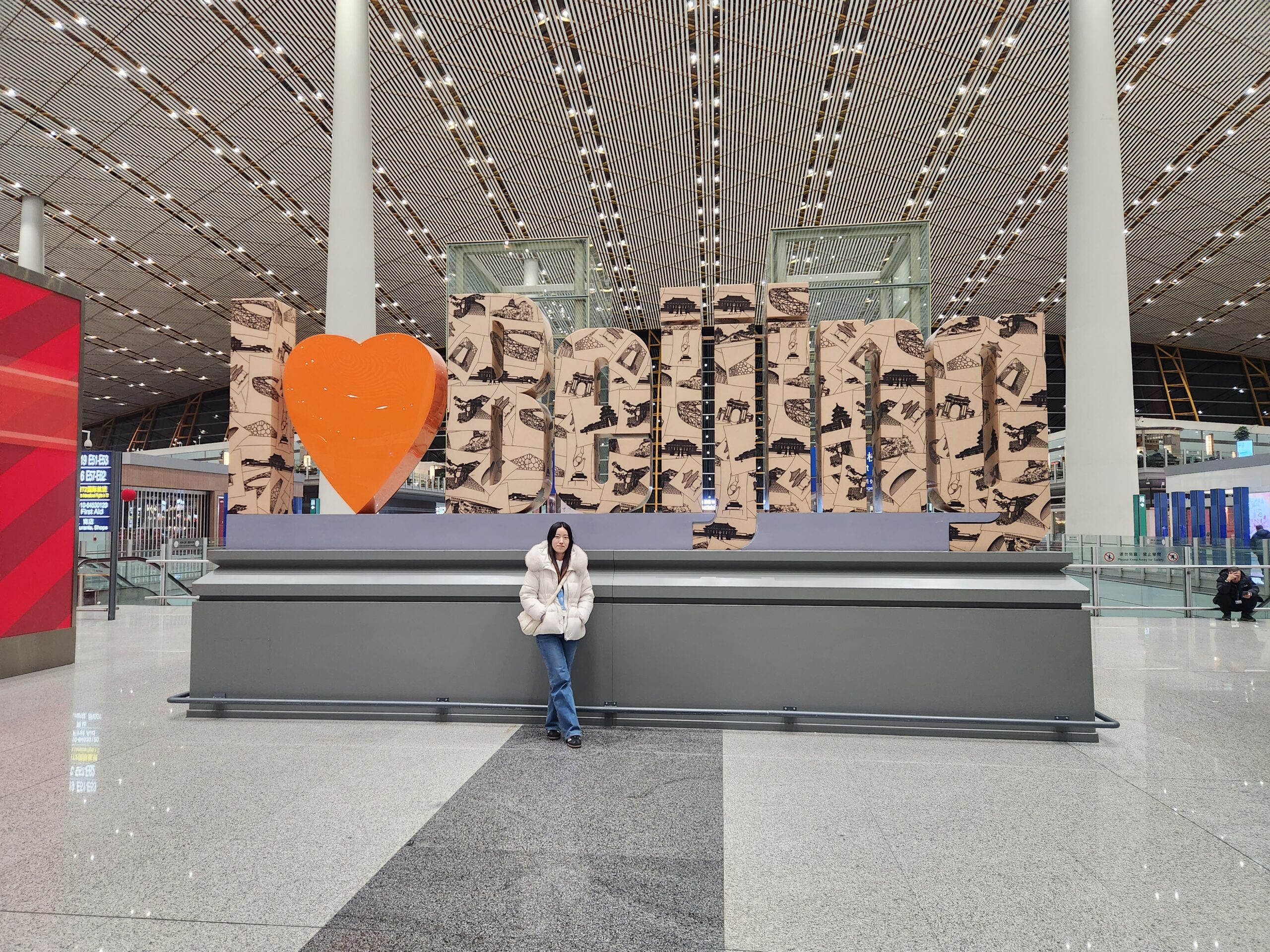 Angie’s parents kindly drove us to the airport in the evening already discussing when our next trip to Beijing should be.  At the airport, we took some final photos for the trip in front of the Beijing sign.